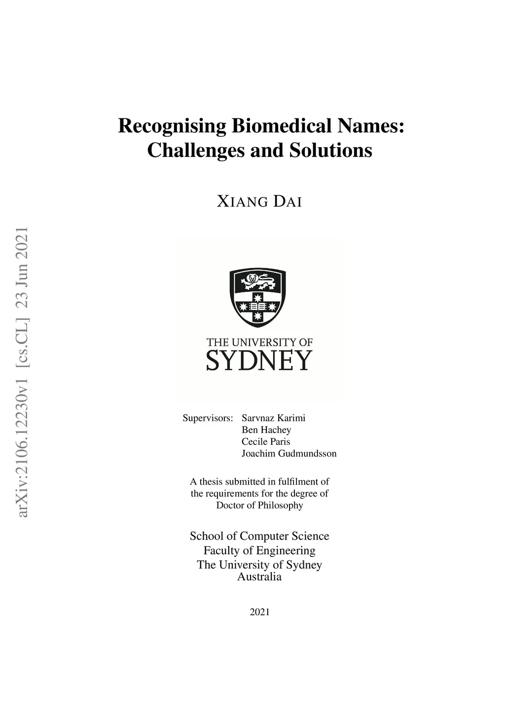 The growth rate in the amount of biomedical documents is staggering. Unlocking information trapped in these documents can enable researchers and practitioners to operate confidently in the information world. Biomedical NER, the task of recognising biomedical names, is usually employed as the first step of the NLP pipeline. Standard NER models, based on sequence tagging technique, are good at recognising short entity mentions in the generic domain. However, there are several open challenges of applying these models to recognise biomedical names: 1) Biomedical names may contain complex inner structure (discontinuity and overlapping) which cannot be recognised using standard sequence tagging technique; 2) The training of NER models usually requires large amount of labelled data, which are difficult to obtain in the biomedical domain; and, 3) Commonly used language representation models are pre-trained on generic data; a domain shift therefore exists between these models and target biomedical data. To deal with these challenges, we explore several research directions and make the following contributions: 1) we propose a transition-based NER model which can recognise discontinuous mentions; 2) We develop a cost-effective approach that nominates the suitable pre-training data; and, 3) We design several data augmentation methods for NER. Our contributions have obvious practical implications, especially when new biomedical applications are needed. Our proposed data augmentation methods can help the NER model achieve decent performance, requiring only a small amount of labelled data. Our investigation regarding selecting pre-training data can improve the model by incorporating language representation models, which are pre-trained using in-domain data. Finally, our proposed transition-based NER model can further improve the performance by recognising discontinuous mentions.