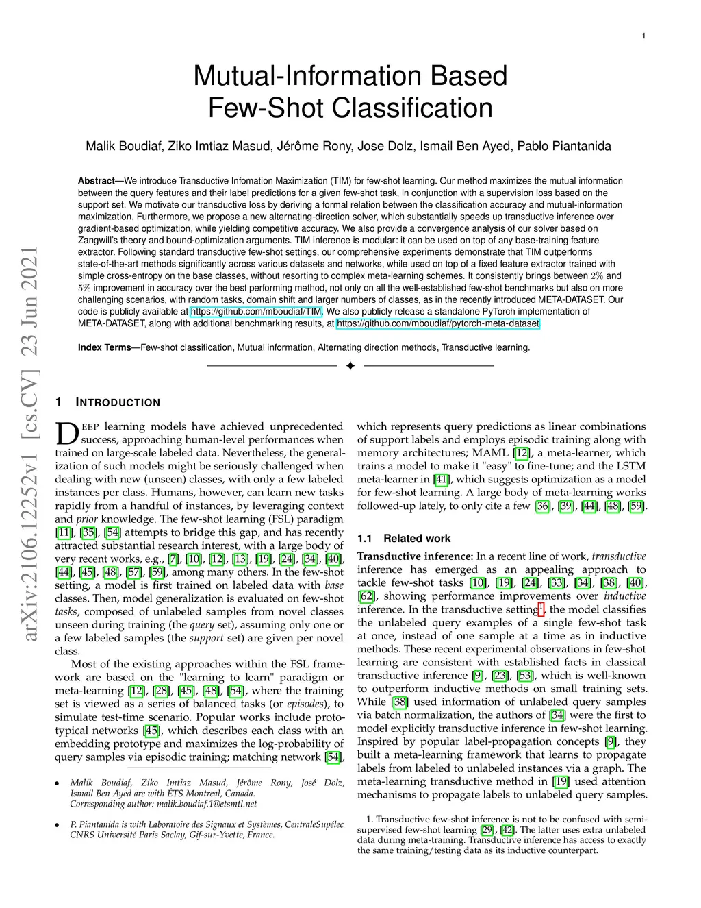 We introduce Transductive Infomation Maximization (TIM) for few-shot learning. Our method maximizes the mutual information between the query features and their label predictions for a given few-shot task, in conjunction with a supervision loss based on the support set. We motivate our transductive loss by deriving a formal relation between the classification accuracy and mutual-information maximization. Furthermore, we propose a new alternating-direction solver, which substantially speeds up transductive inference over gradient-based optimization, while yielding competitive accuracy. We also provide a convergence analysis of our solver based on Zangwill's theory and bound-optimization arguments. TIM inference is modular: it can be used on top of any base-training feature extractor. Following standard transductive few-shot settings, our comprehensive experiments demonstrate that TIM outperforms state-of-the-art methods significantly across various datasets and networks, while used on top of a fixed feature extractor trained with simple cross-entropy on the base classes, without resorting to complex meta-learning schemes. It consistently brings between 2 % and 5 % improvement in accuracy over the best performing method, not only on all the well-established few-shot benchmarks but also on more challenging scenarios, with random tasks, domain shift and larger numbers of classes, as in the recently introduced META-DATASET. Our code is publicly available at https://github.com/mboudiaf/TIM. We also publicly release a standalone PyTorch implementation of META-DATASET, along with additional benchmarking results, at https://github.com/mboudiaf/pytorch-meta-dataset.