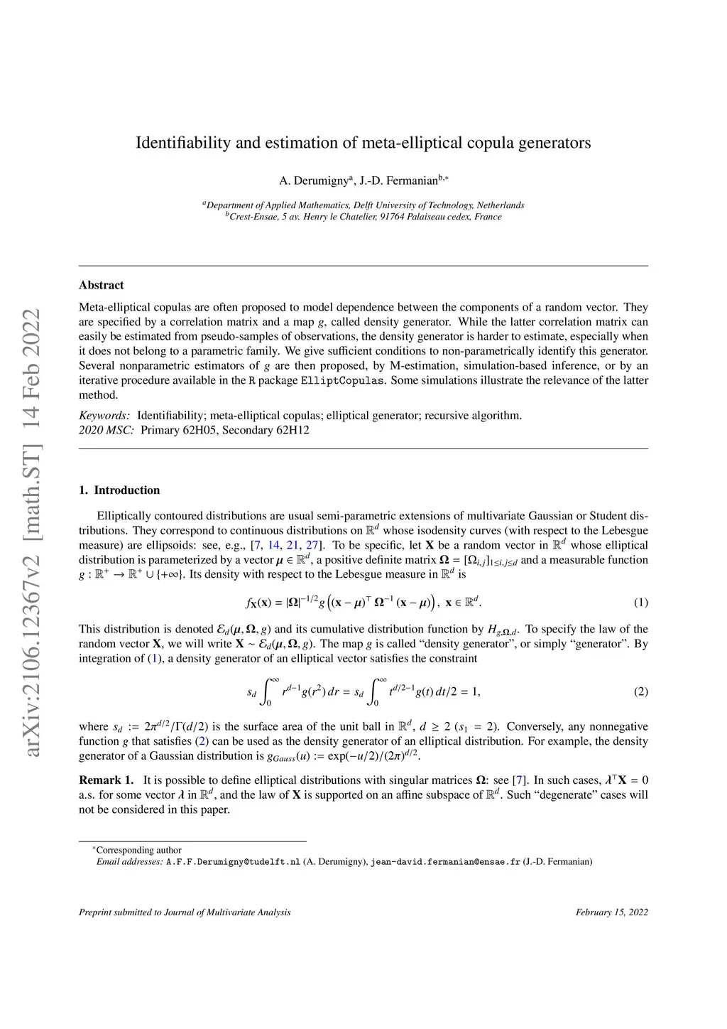 Meta-elliptical copulas are often proposed to model dependence between the components of a random vector. They are specified by a correlation matrix and a map , called density generator. While the latter correlation matrix can easily be estimated from pseudo-samples of observations, the density generator is harder to estimate, especially when it does not belong to a parametric family. We give sufficient conditions to non-parametrically identify this generator. Several nonparametric estimators of are then proposed, by M-estimation, simulation-based inference, or by an iterative procedure available in the R package ElliptCopulas. Some simulations illustrate the relevance of the latter method.
