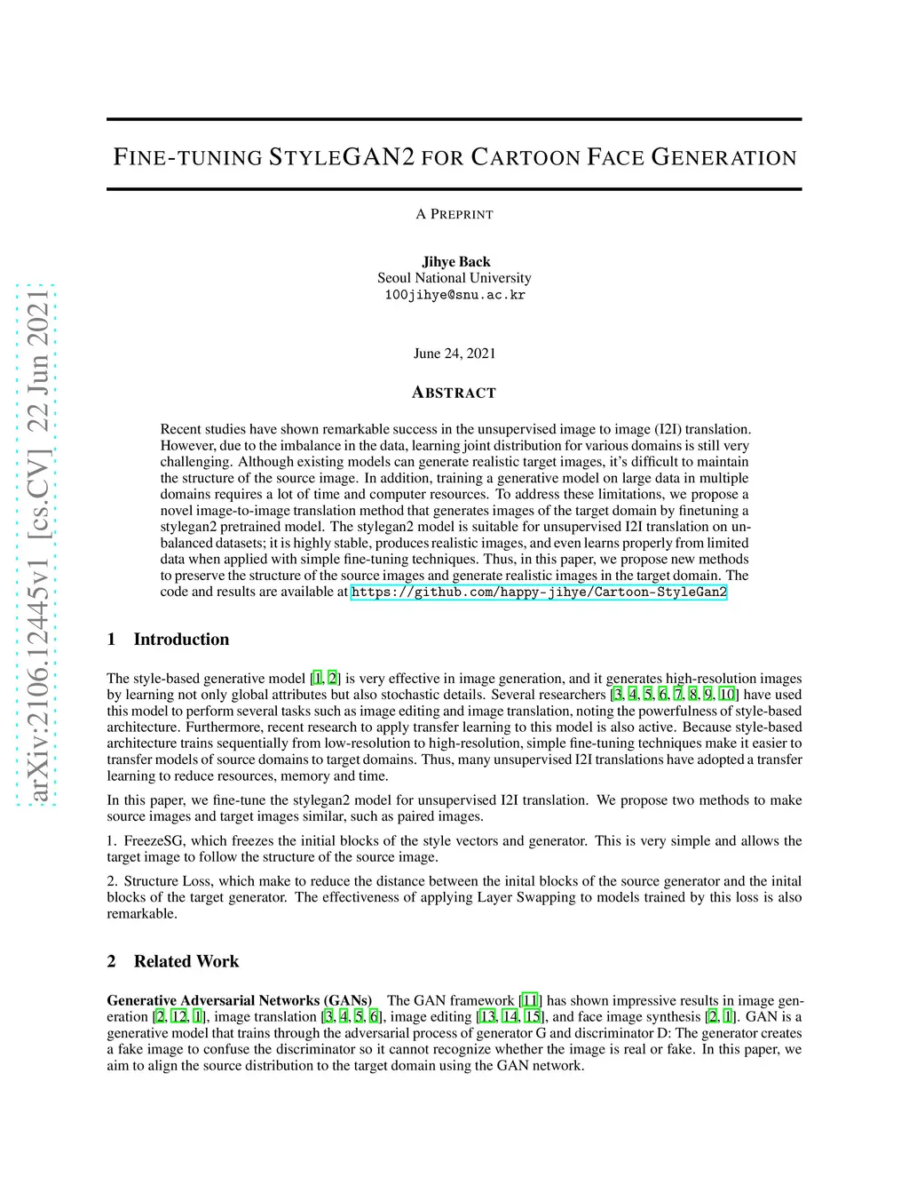 Fine-Tuning StyleGAN2 For Cartoon Face Generation