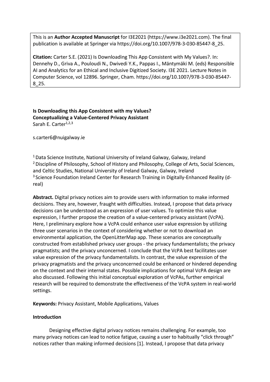 Is Downloading this App Consistent with my Values? Conceptualizing a