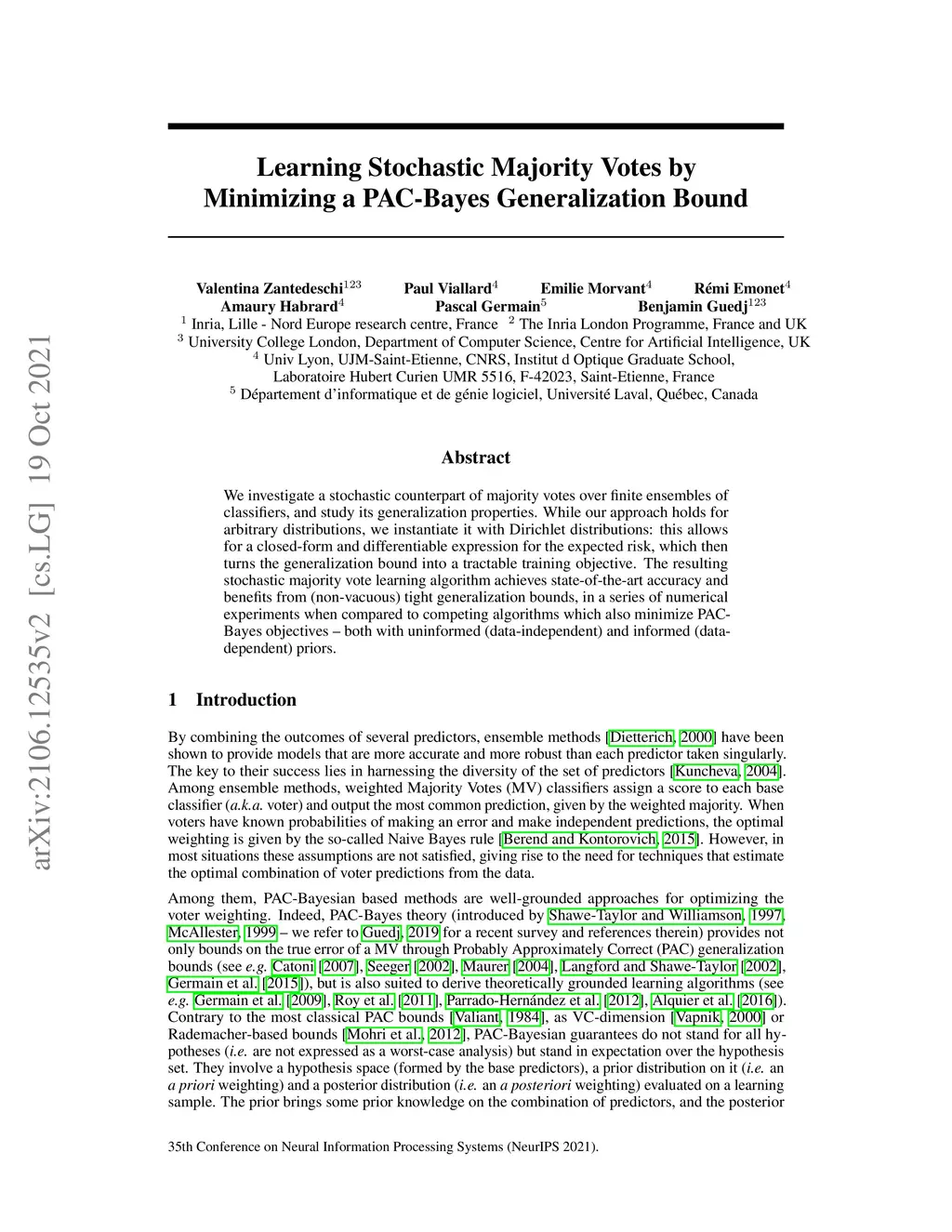 Learning Stochastic Majority Votes by Minimizing a PAC-Bayes