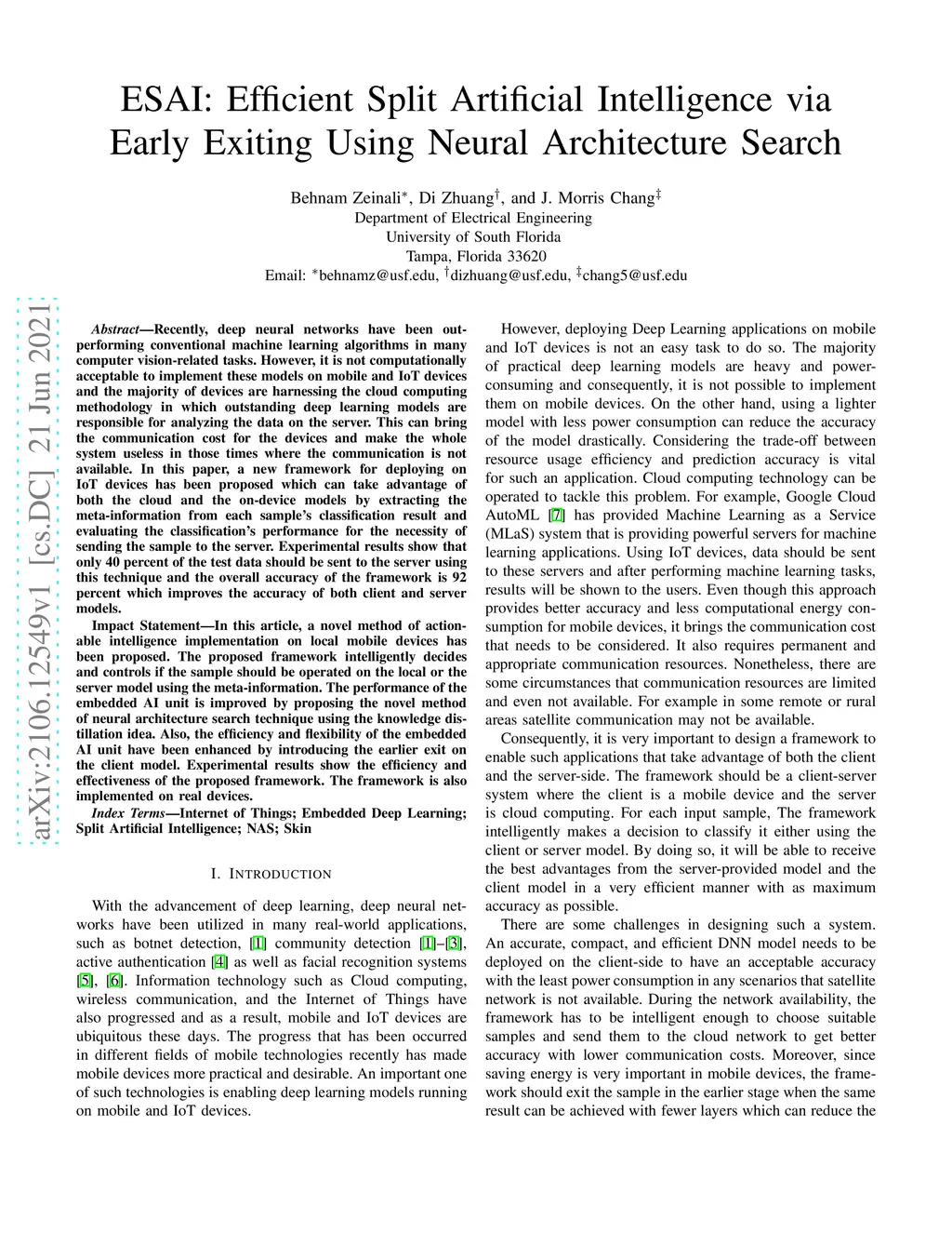 ESAI: Efficient Split Artificial Intelligence via Early Exiting Using