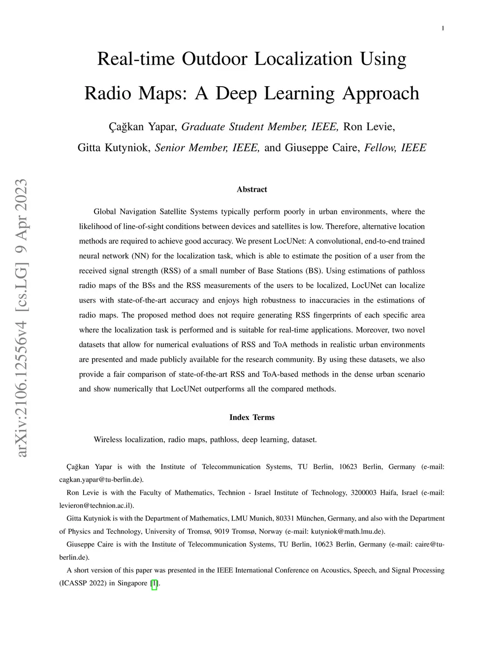 Real-time Outdoor Localization Using Radio Maps: A Deep Learning