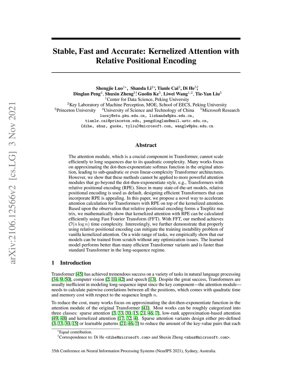 Stable, Fast and Accurate: Kernelized Attention with Relative Positional