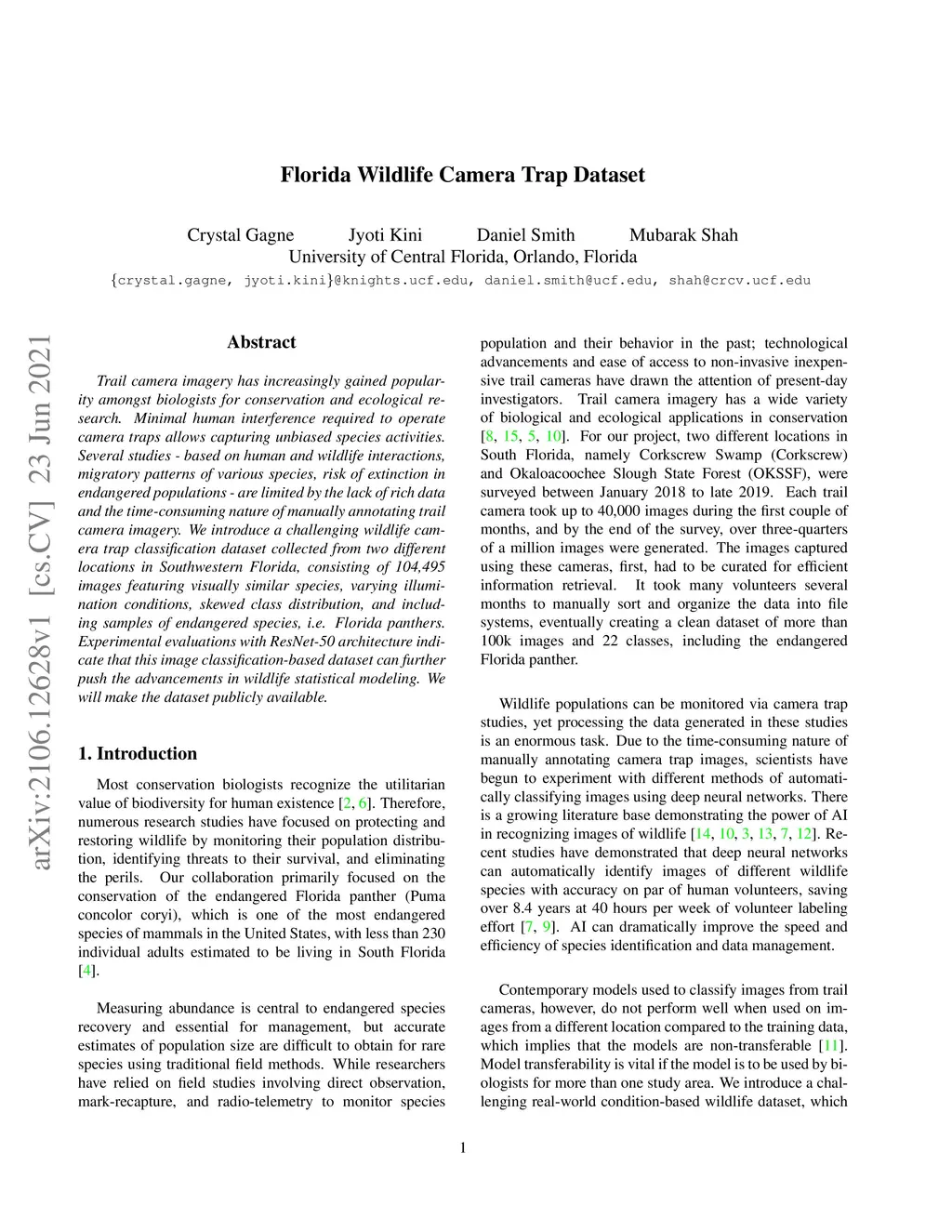 Florida Wildlife Camera Trap Dataset