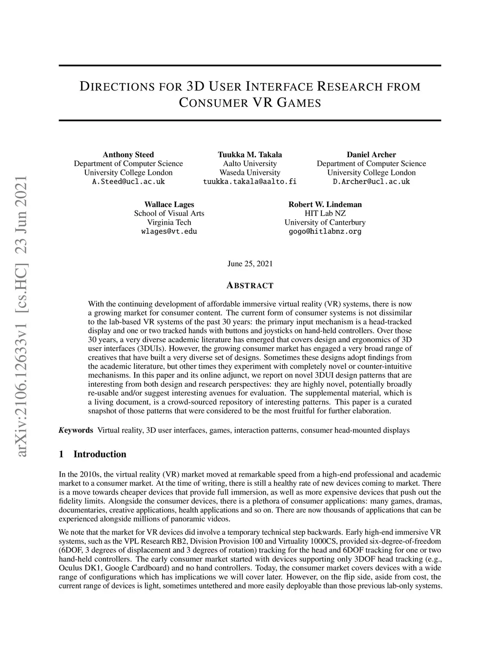 Directions for 3D User Interface Research from Consumer VR Games