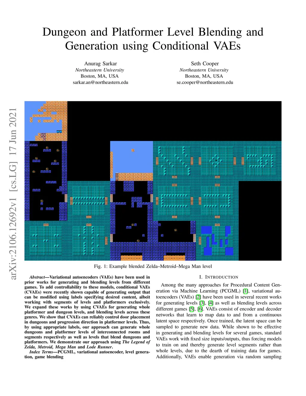 Dungeon and Platformer Level Blending and Generation using Conditional