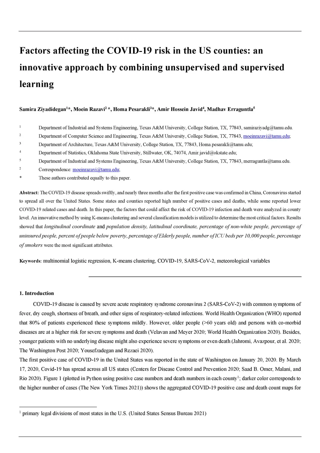 Factors affecting the COVID-19 risk in the US counties: an innovative