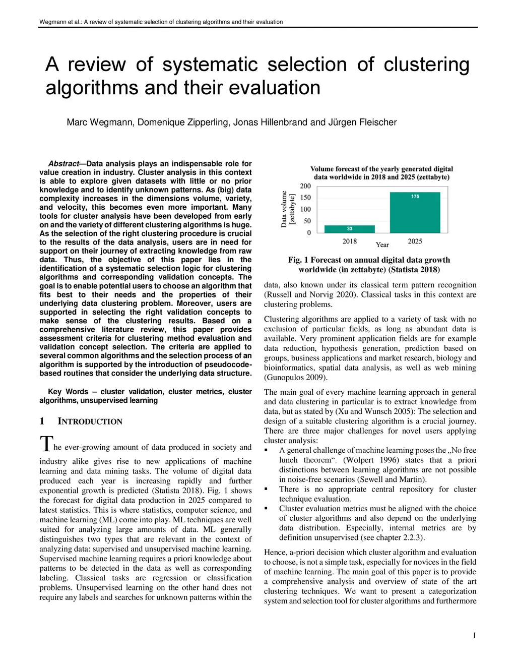 Data analysis plays an indispensable role for value creation in industry. Cluster analysis in this context is able to explore given datasets with little or no prior knowledge and to identify unknown patterns. As (big) data complexity increases in the dimensions volume, variety, and velocity, this becomes even more important. Many tools for cluster analysis have been developed from early on and the variety of different clustering algorithms is huge. As the selection of the right clustering procedure is crucial to the results of the data analysis, users are in need for support on their journey of extracting knowledge from raw data. Thus, the objective of this paper lies in the identification of a systematic selection logic for clustering algorithms and corresponding validation concepts. The goal is to enable potential users to choose an algorithm that fits best to their needs and the properties of their underlying data clustering problem. Moreover, users are supported in selecting the right validation concepts to make sense of the clustering results. Based on a comprehensive literature review, this paper provides assessment criteria for clustering method evaluation and validation concept selection. The criteria are applied to several common algorithms and the selection process of an algorithm is supported by the introduction of pseudocode-based routines that consider the underlying data structure.