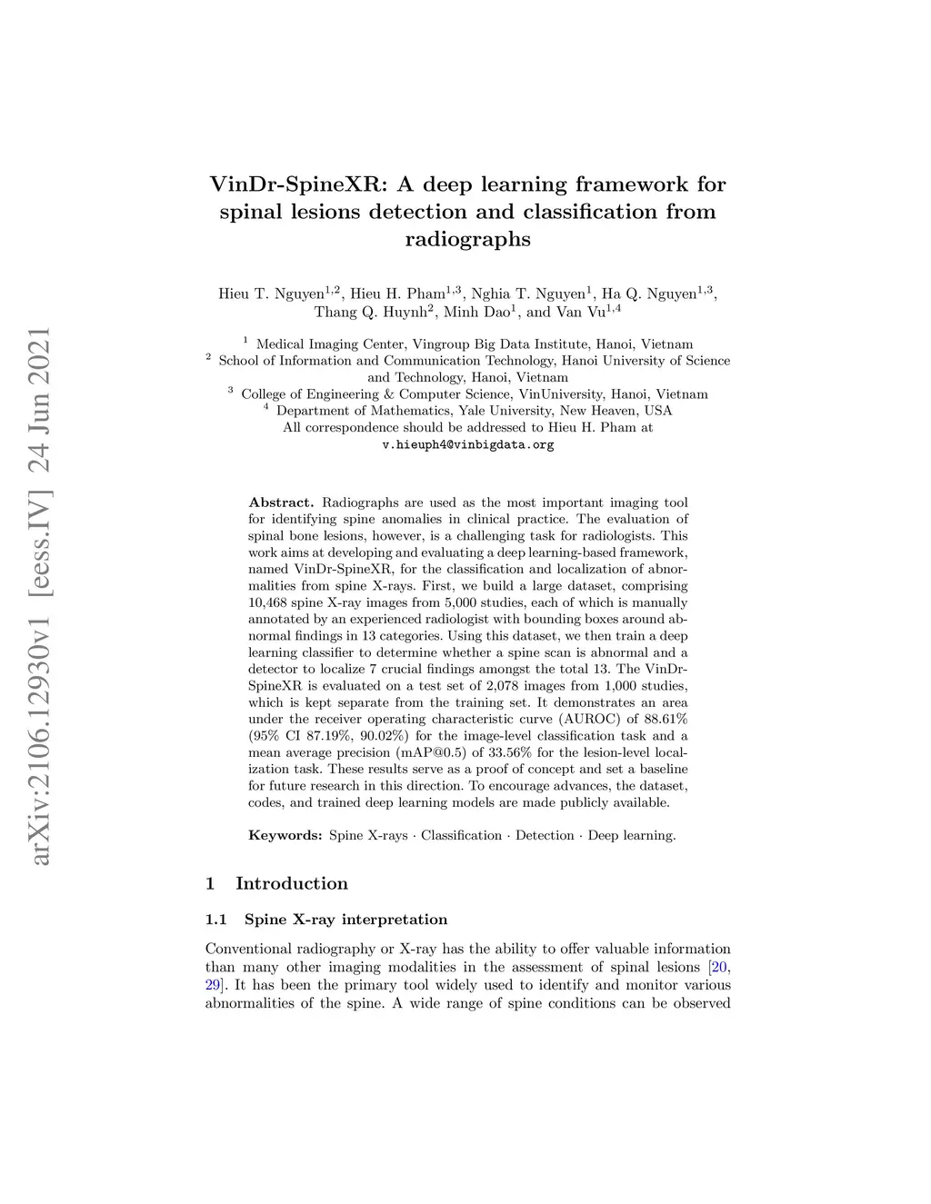 VinDr-SpineXR: A deep learning framework for spinal lesions detection