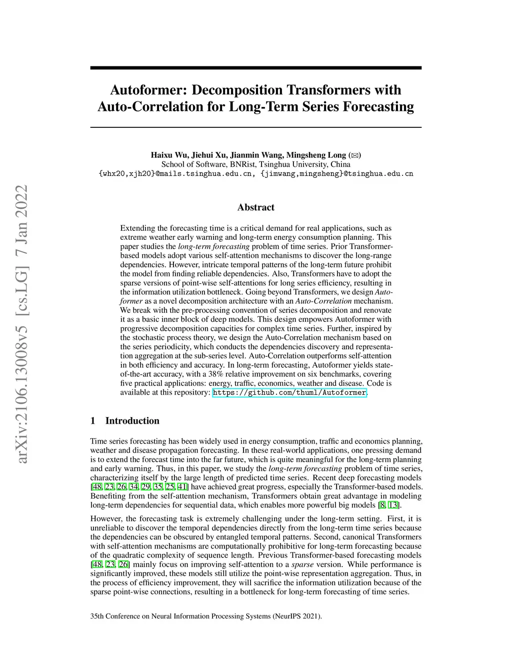 Autoformer: Decomposition Transformers with Auto-Correlation for