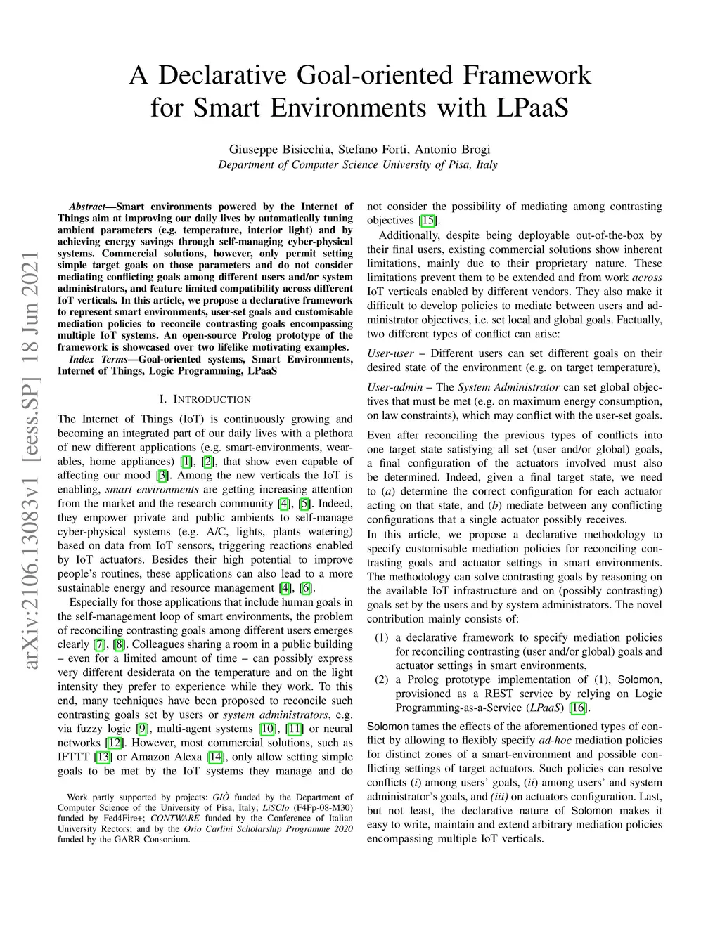 A Declarative Goal-oriented Framework for Smart Environments with LPaaS