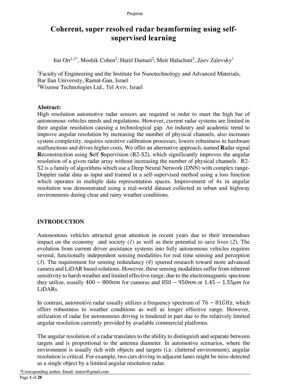 High resolution automotive radar sensors are required in order to meet the high bar of autonomous vehicles needs and regulations. However, current radar systems are limited in their angular resolution causing a technological gap. An industry and academic trend to improve angular resolution by increasing the number of physical channels, also increases system complexity, requires sensitive calibration processes, lowers robustness to hardware malfunctions and drives higher costs. We offer an alternative approach, named Radar signal Reconstruction using Self Supervision (R2-S2), which significantly improves the angular resolution of a given radar array without increasing the number of physical channels. R2-S2 is a family of algorithms which use a Deep Neural Network (DNN) with complex range-Doppler radar data as input and trained in a self-supervised method using a loss function which operates in multiple data representation spaces. Improvement of 4x in angular resolution was demonstrated using a real-world dataset collected in urban and highway environments during clear and rainy weather conditions.