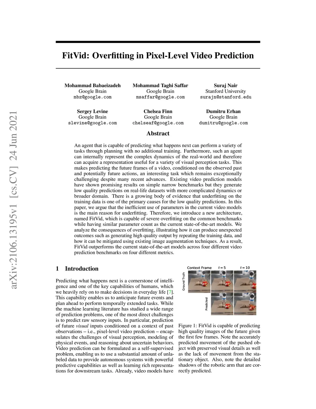 FitVid: Overfitting in Pixel-Level Video Prediction