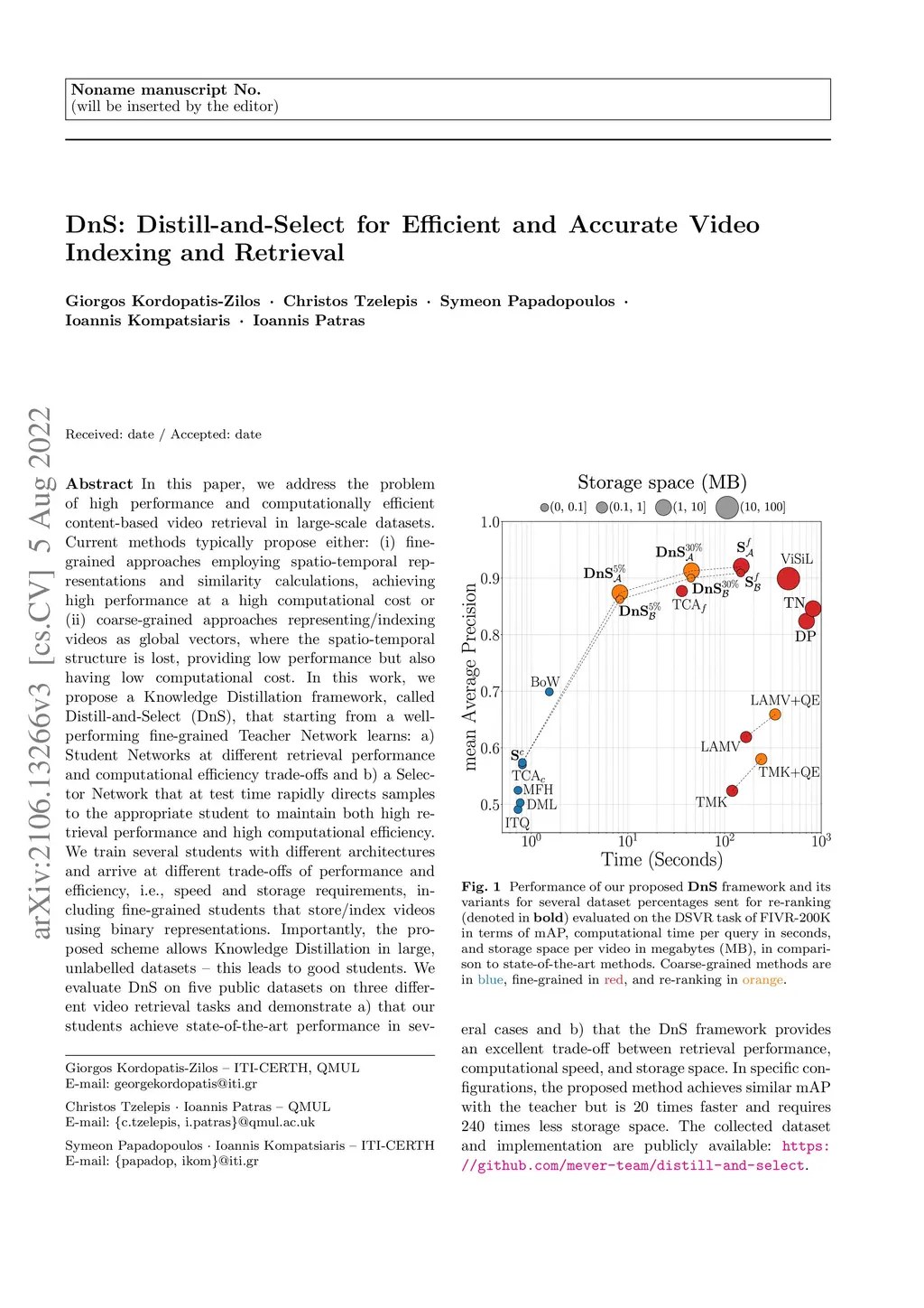 DnS: Distill-and-Select for Efficient and Accurate Video Indexing and