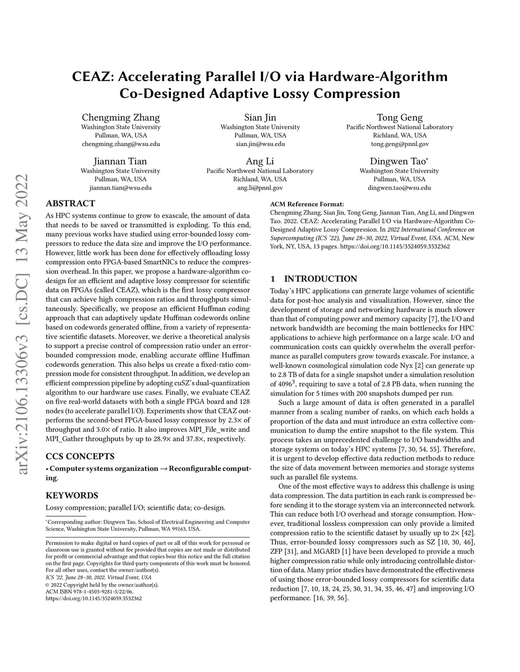 CEAZ: Accelerating Parallel I/O via Hardware-Algorithm Co-Designed