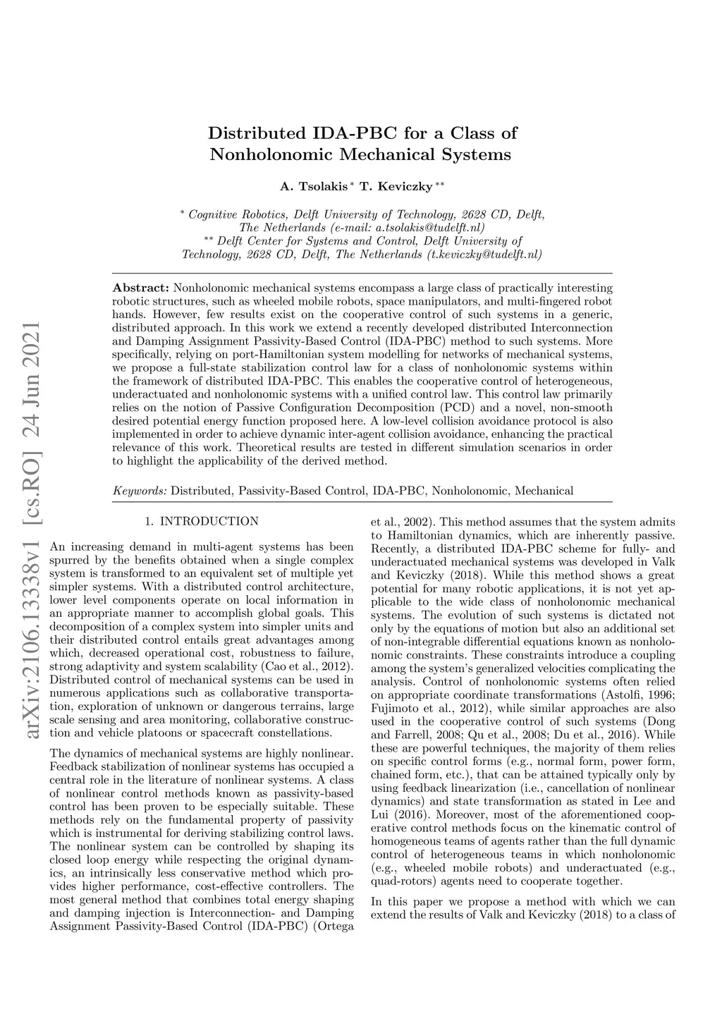 Distributed IDA-PBC for a Class of Nonholonomic Mechanical Systems
