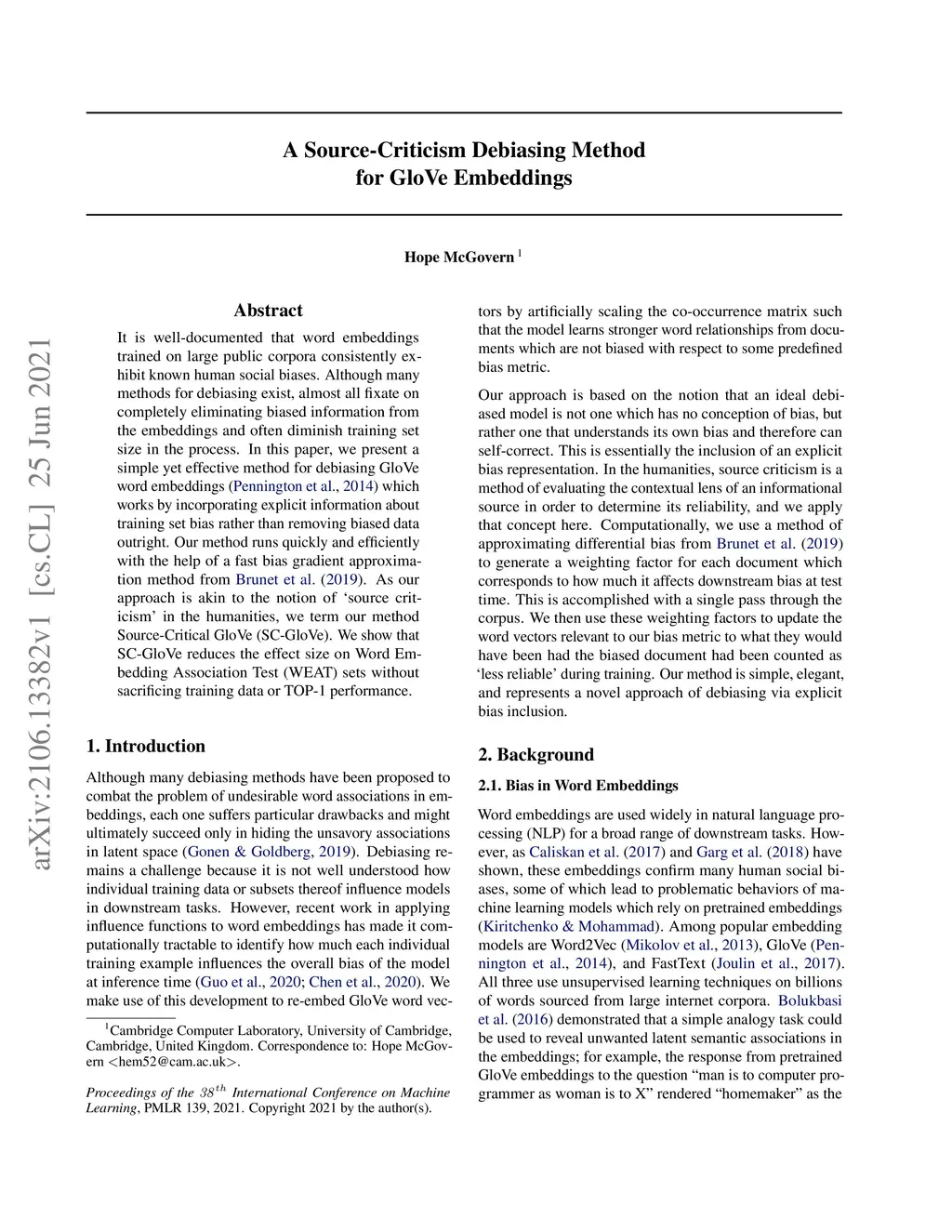 A Source-Criticism Debiasing Method for GloVe Embeddings