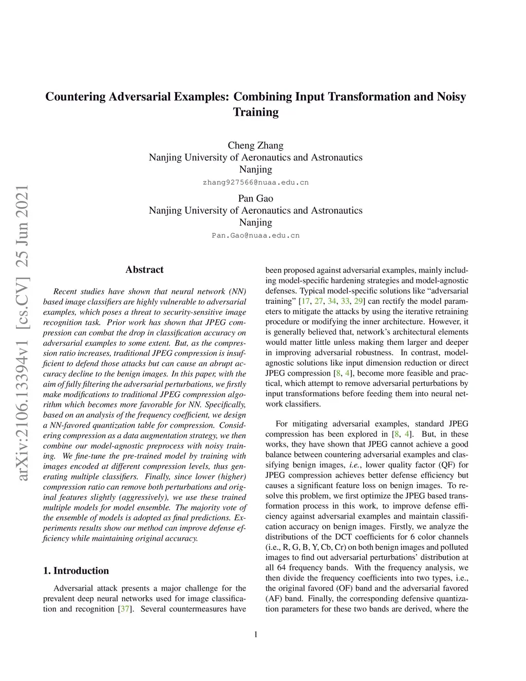 Recent studies have shown that neural network (NN) based image classifiers are highly vulnerable to adversarial examples, which poses a threat to security-sensitive image recognition task. Prior work has shown that JPEG compression can combat the drop in classification accuracy on adversarial examples to some extent. But, as the compression ratio increases, traditional JPEG compression is insufficient to defend those attacks but can cause an abrupt accuracy decline to the benign images. In this paper, with the aim of fully filtering the adversarial perturbations, we firstly make modifications to traditional JPEG compression algorithm which becomes more favorable for NN. Specifically, based on an analysis of the frequency coefficient, we design a NN-favored quantization table for compression. Considering compression as a data augmentation strategy, we then combine our model-agnostic preprocess with noisy training. We fine-tune the pre-trained model by training with images encoded at different compression levels, thus generating multiple classifiers. Finally, since lower (higher) compression ratio can remove both perturbations and original features slightly (aggressively), we use these trained multiple models for model ensemble. The majority vote of the ensemble of models is adopted as final predictions. Experiments results show our method can improve defense efficiency while maintaining original accuracy.