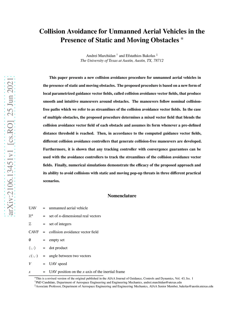 Collision Avoidance for Unmanned Aerial Vehicles in the Presence of