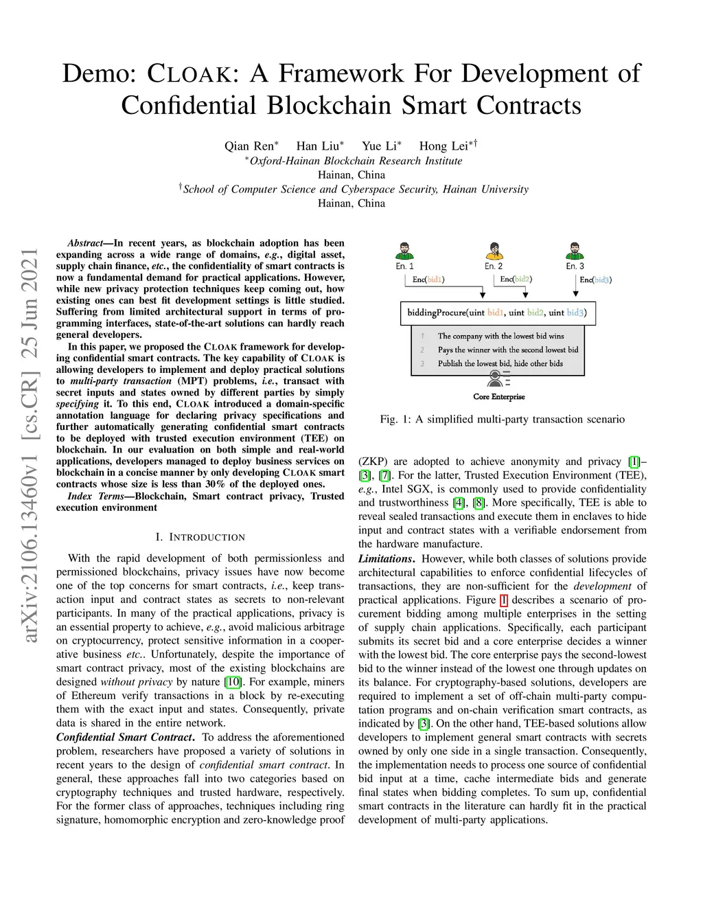 CLOAK: A Framework For Development of Confidential Blockchain Smart