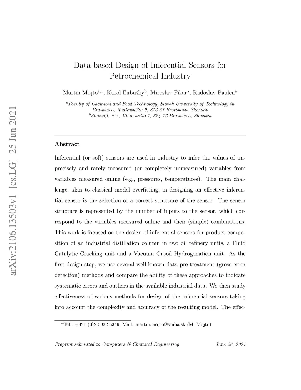 Data-based Design of Inferential Sensors for Petrochemical Industry