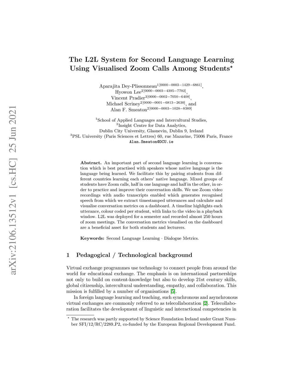 The L2L System for Second Language Learning Using Visualised Zoom Calls