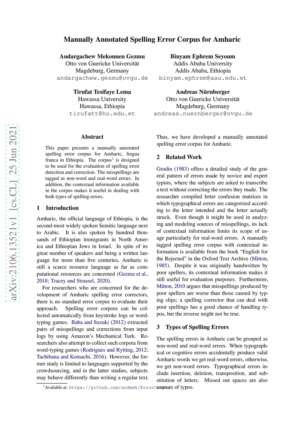 Manually Annotated Spelling Error Corpus for Amharic