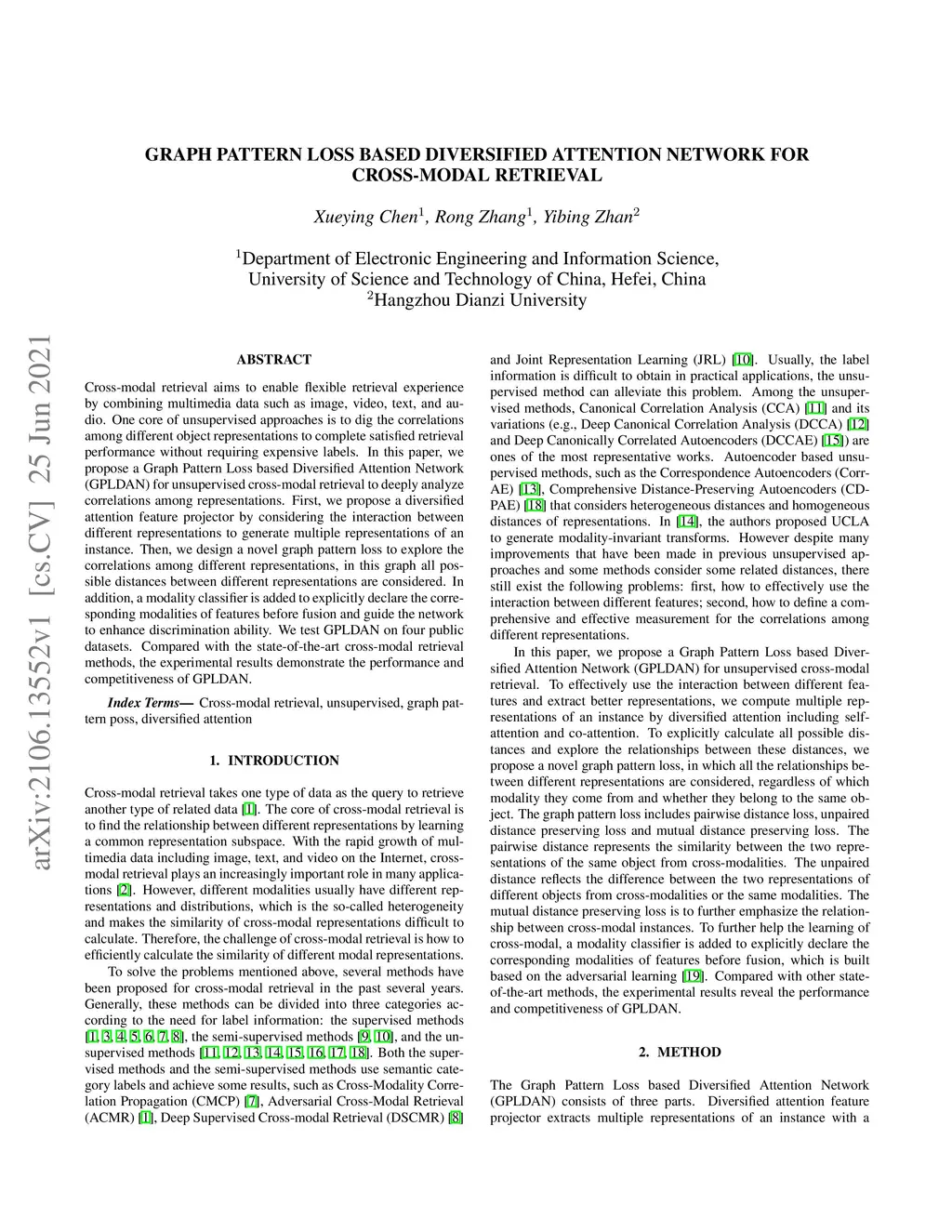 Graph Pattern Loss based Diversified Attention Network for Cross-Modal