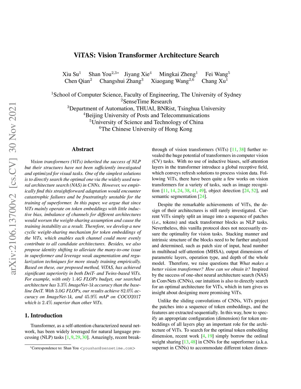 ViTAS: Vision Transformer Architecture Search