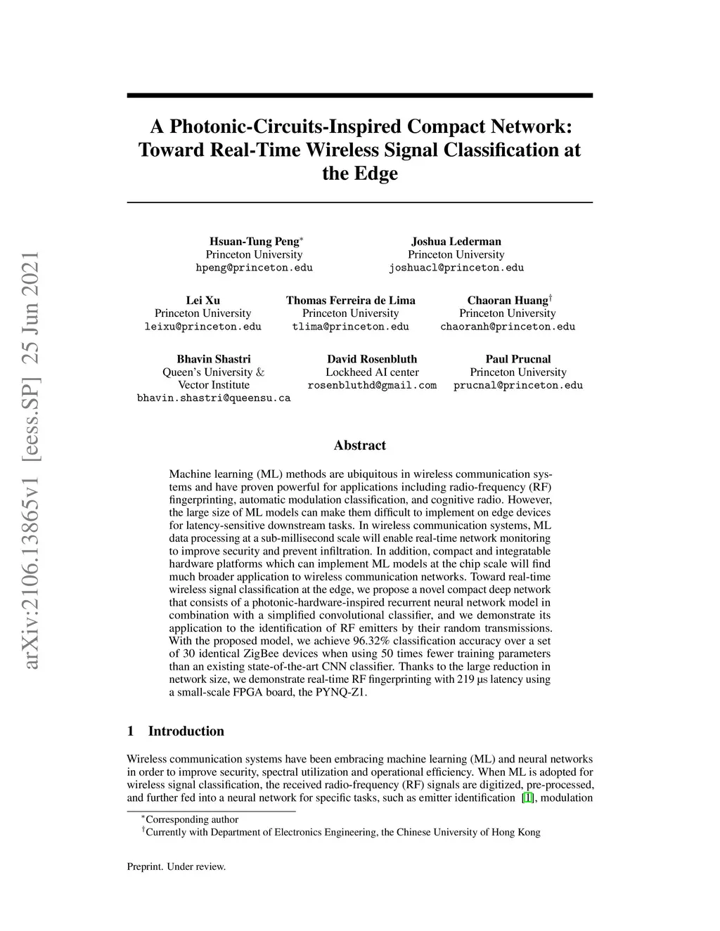 A Photonic-Circuits-Inspired Compact Network: Toward Real-Time Wireless