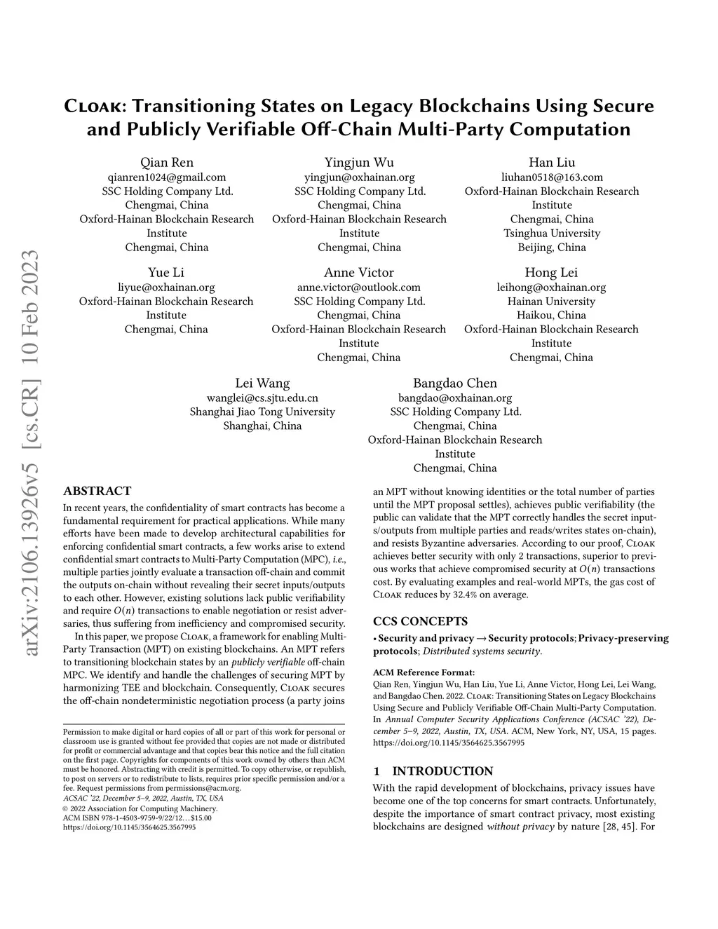 Cloak: Transitioning States on Legacy Blockchains Using Secure and