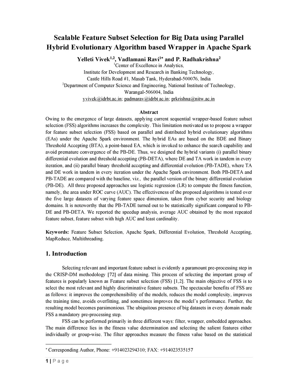 Evolutionary Algorithm based Wrapper in Apache Spark