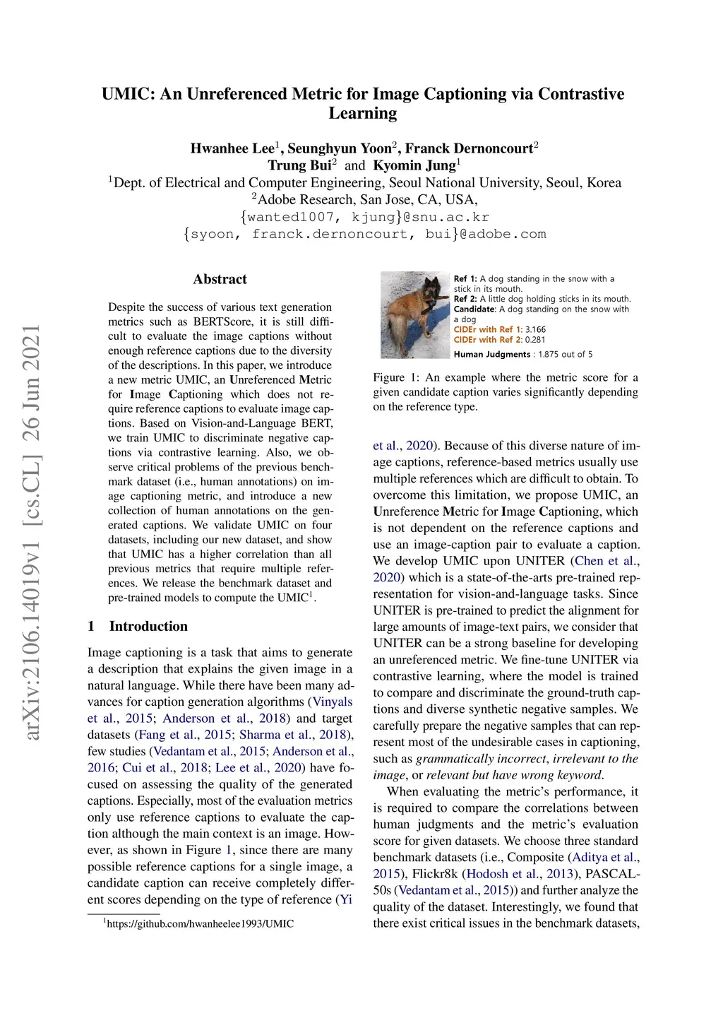 UMIC: An Unreferenced Metric for Image Captioning via Contrastive