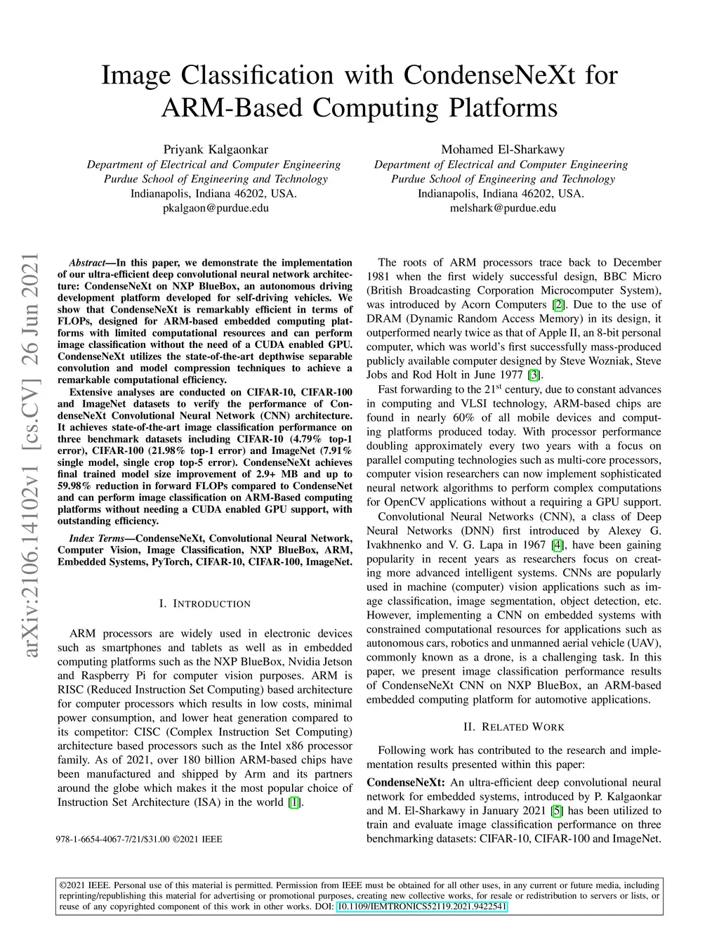 Image Classification with CondenseNeXt for ARM-Based Computing Platforms