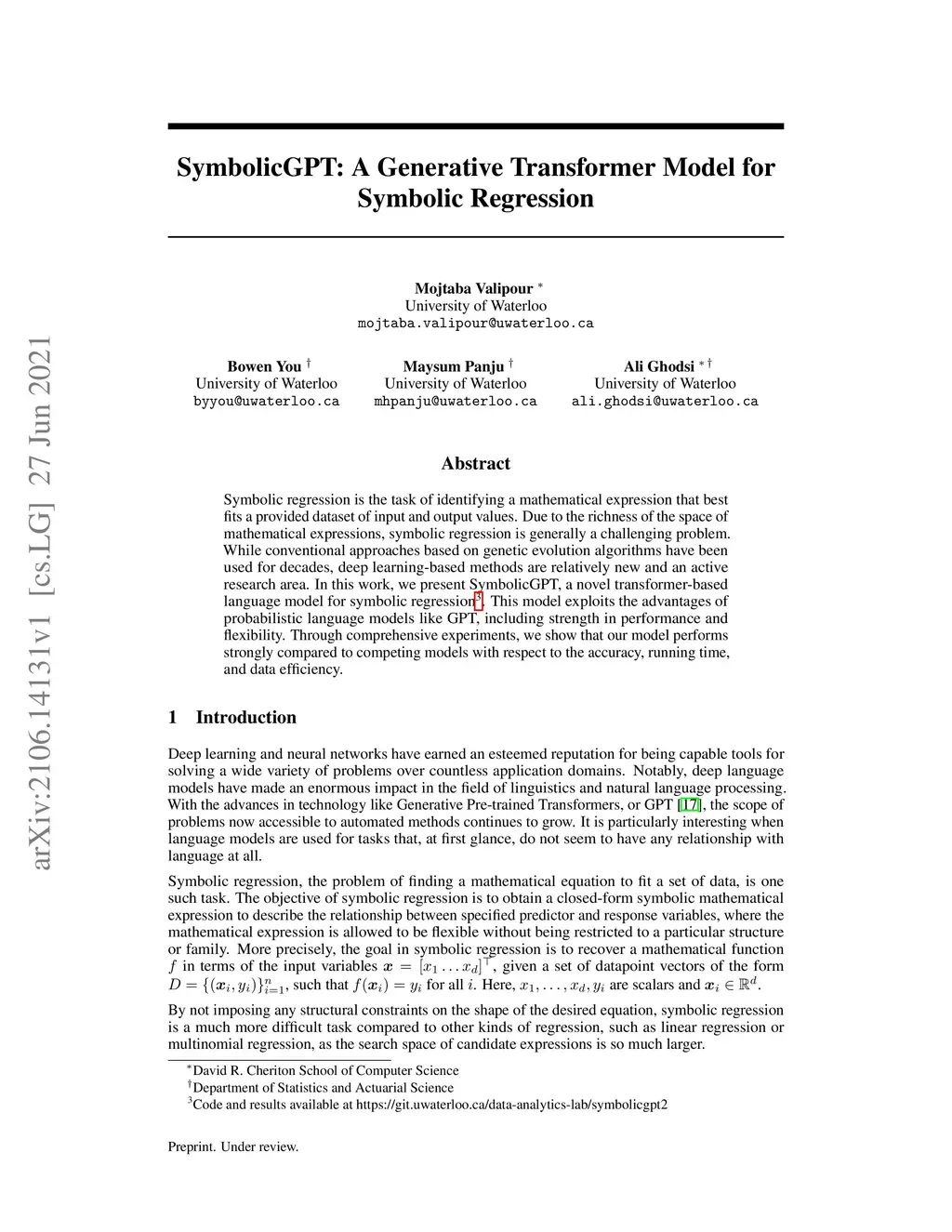 SymbolicGPT: A Generative Transformer Model for Symbolic Regression