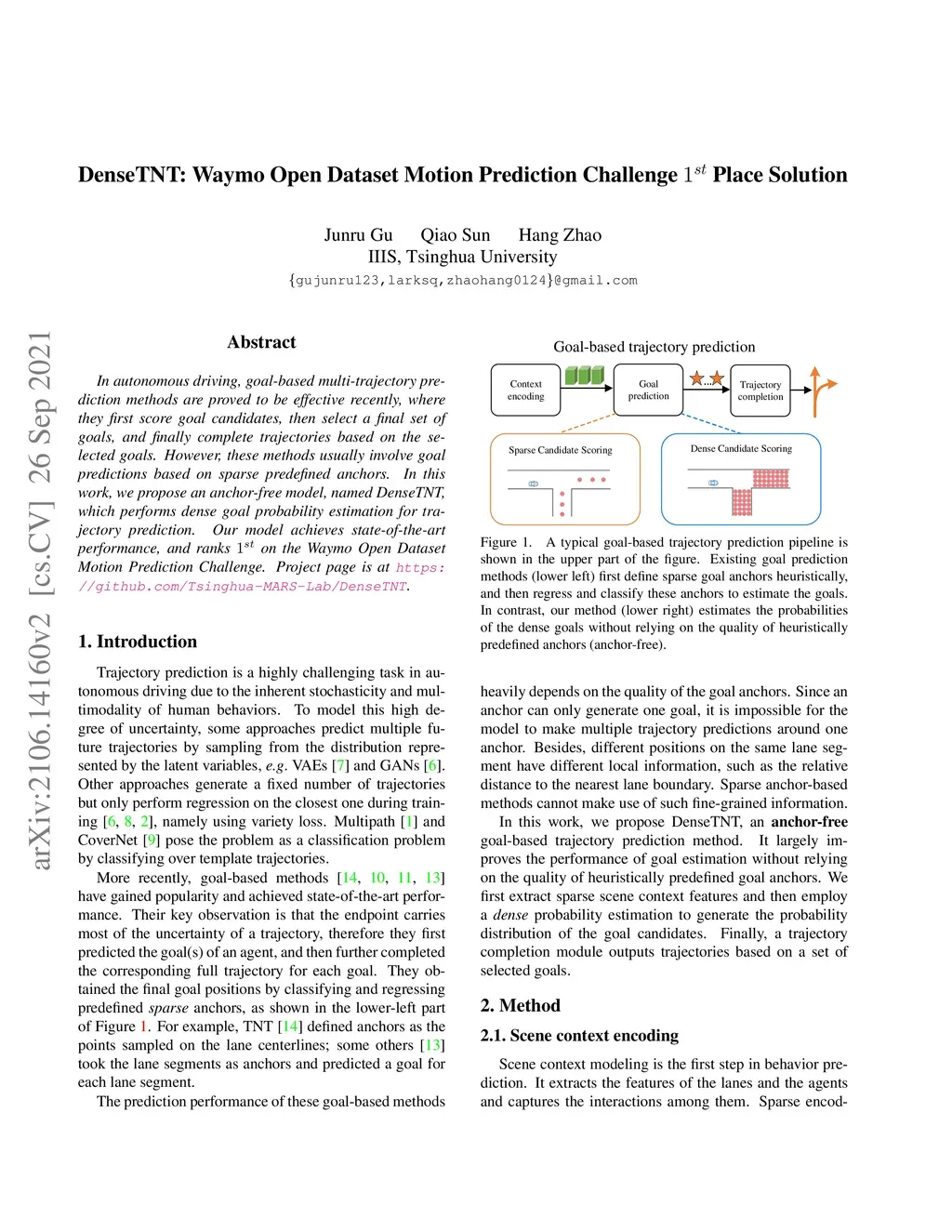 DenseTNT: Waymo Open Dataset Motion Prediction Challenge 1st Place