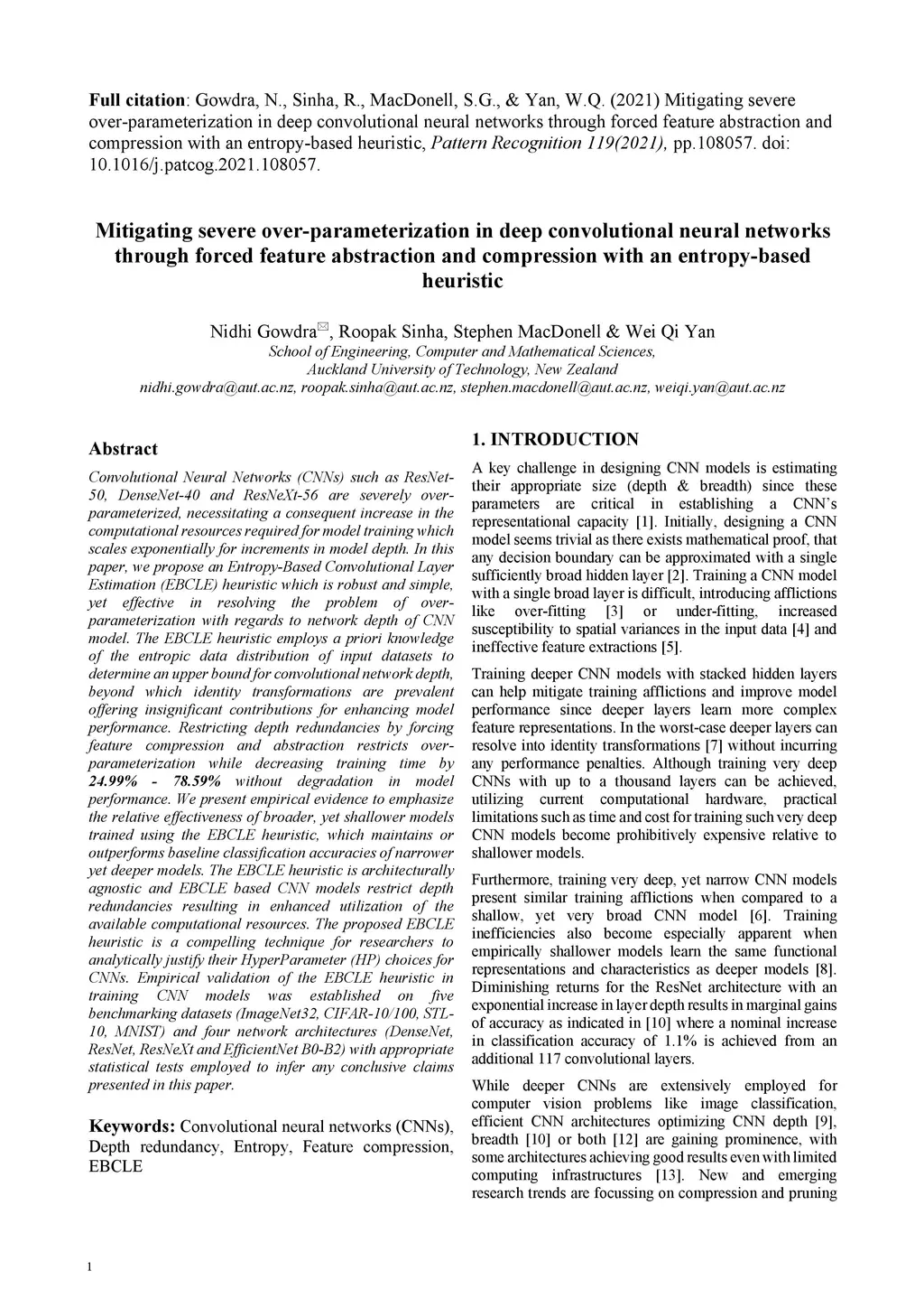 Convolutional Neural Networks (CNNs) such as ResNet-50, DenseNet-40 and ResNeXt-56 are severely over-parameterized, necessitating a consequent increase in the computational resources required for model training which scales exponentially for increments in model depth. In this paper, we propose an Entropy-Based Convolutional Layer Estimation (EBCLE) heuristic which is robust and simple, yet effective in resolving the problem of over-parameterization with regards to network depth of CNN model. The EBCLE heuristic employs a priori knowledge of the entropic data distribution of input datasets to determine an upper bound for convolutional network depth, beyond which identity transformations are prevalent offering insignificant contributions for enhancing model performance. Restricting depth redundancies by forcing feature compression and abstraction restricts over-parameterization while decreasing training time by 24.99% - 78.59% without degradation in model performance. We present empirical evidence to emphasize the relative effectiveness of broader, yet shallower models trained using the EBCLE heuristic, which maintains or outperforms baseline classification accuracies of narrower yet deeper models. The EBCLE heuristic is architecturally agnostic and EBCLE based CNN models restrict depth redundancies resulting in enhanced utilization of the available computational resources. The proposed EBCLE heuristic is a compelling technique for researchers to analytically justify their HyperParameter (HP) choices for CNNs. Empirical validation of the EBCLE heuristic in training CNN models was established on five benchmarking datasets (ImageNet32, CIFAR-10/100, STL-10, MNIST) and four network architectures (DenseNet, ResNet, ResNeXt and EfficientNet B0-B2) with appropriate statistical tests employed to infer any conclusive claims presented in this paper.