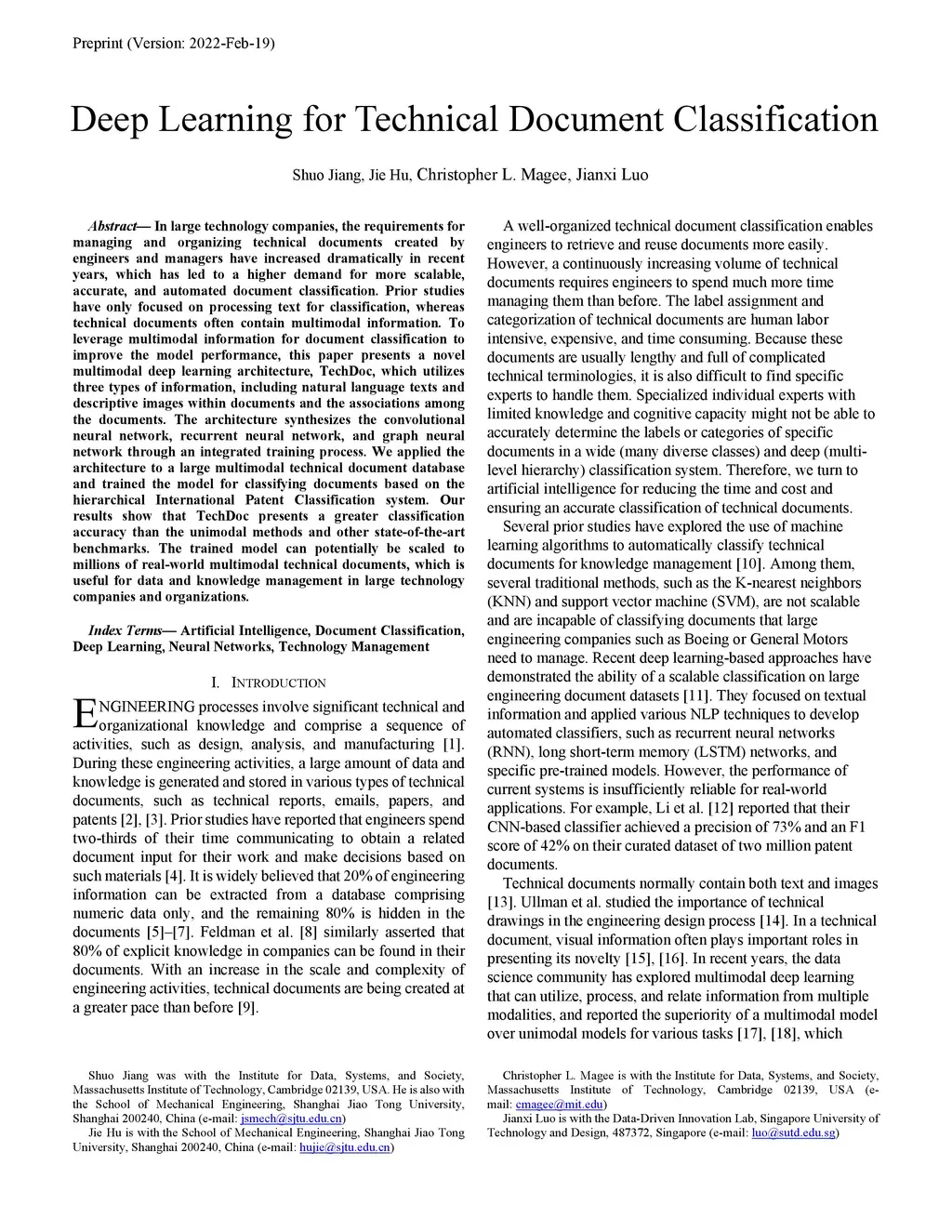 Deep Learning for Technical Document Classification