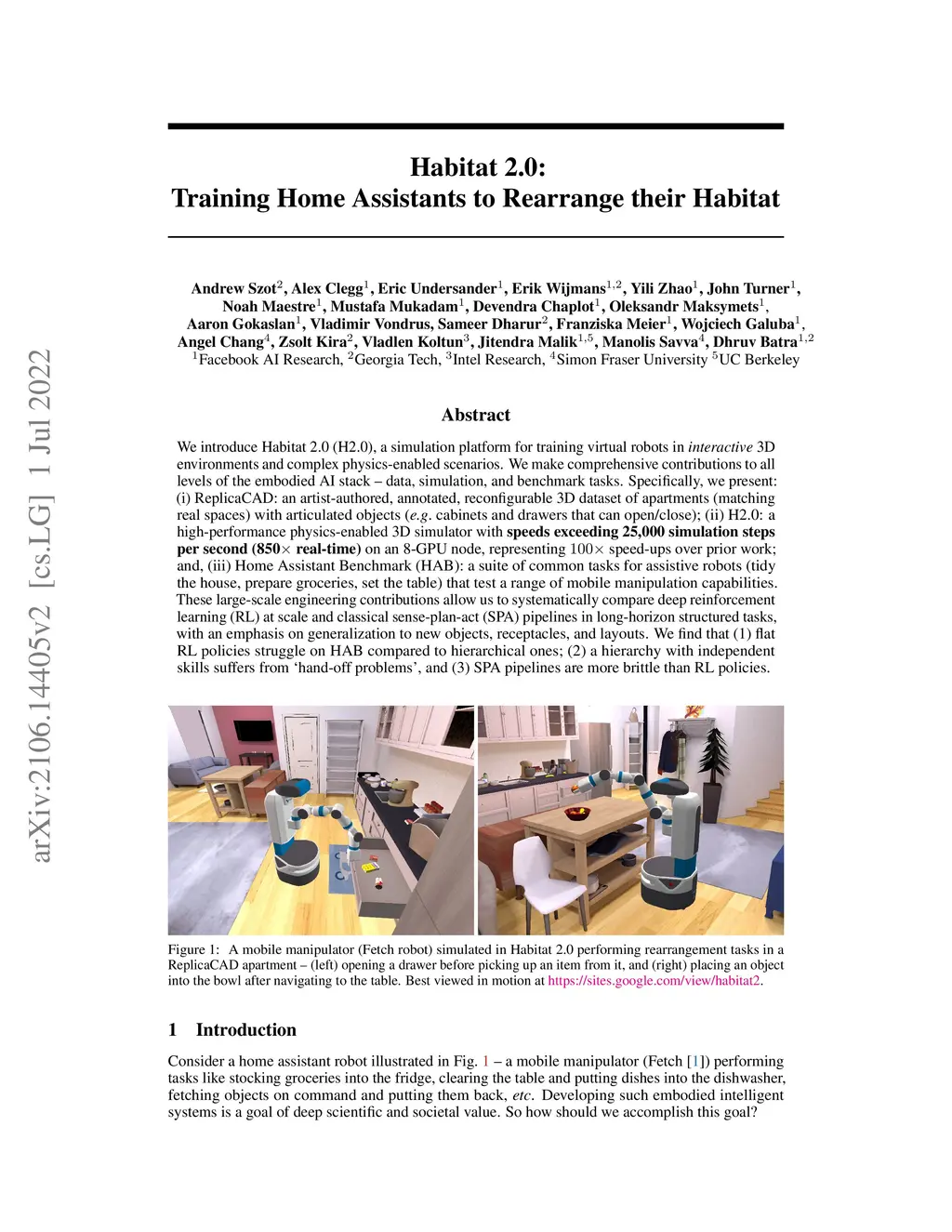 Habitat 2.0: Training Home Assistants to Rearrange their Habitat