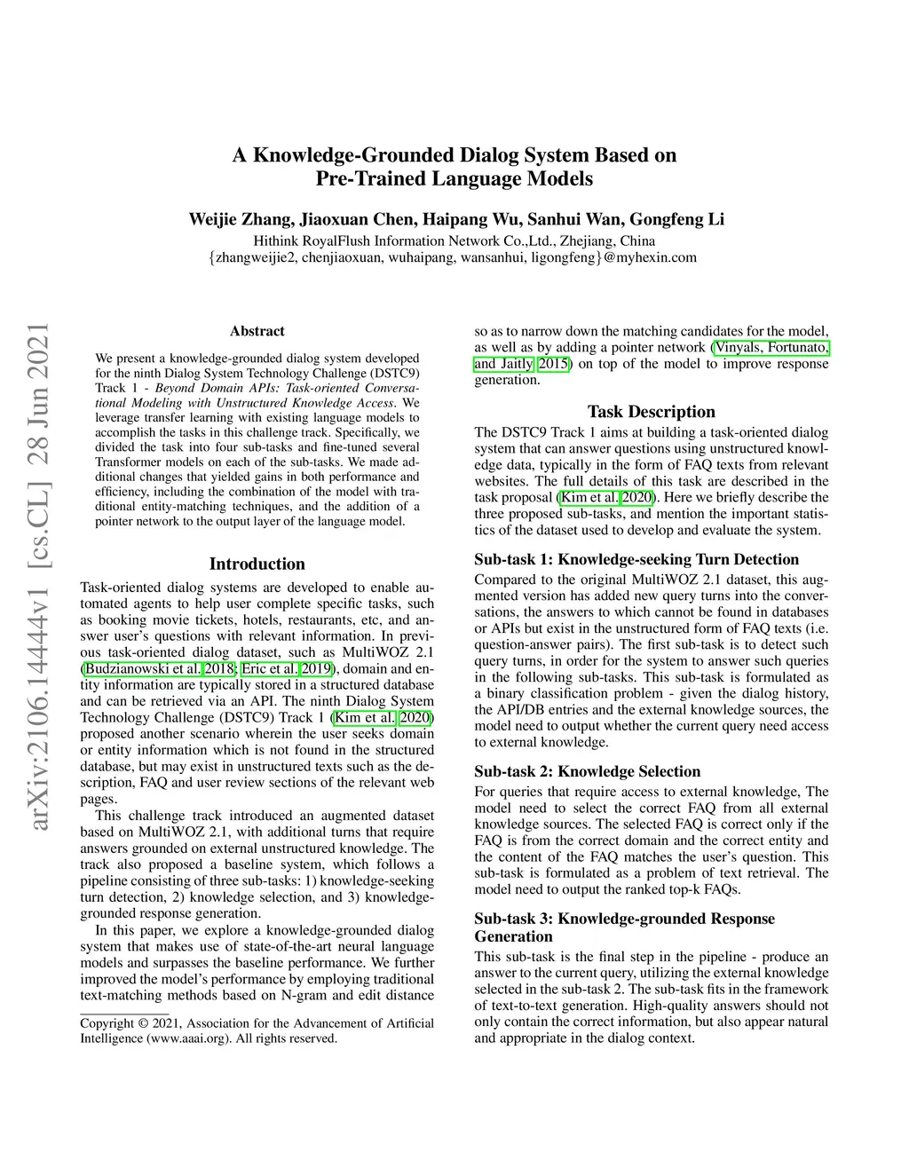 A Knowledge-Grounded Dialog System Based on Pre-Trained Language Models