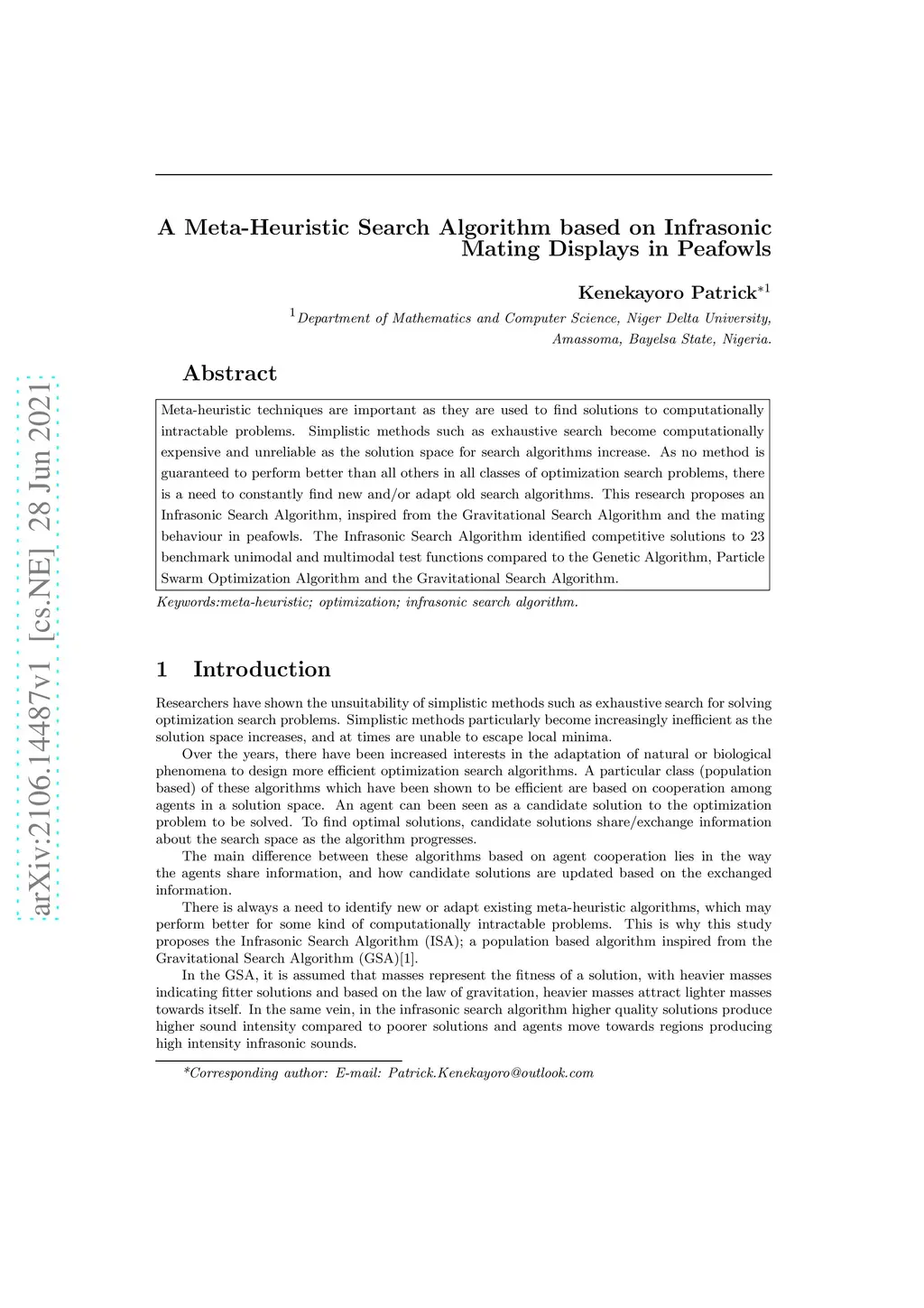 A Meta-Heuristic Search Algorithm based on Infrasonic Mating Displays in