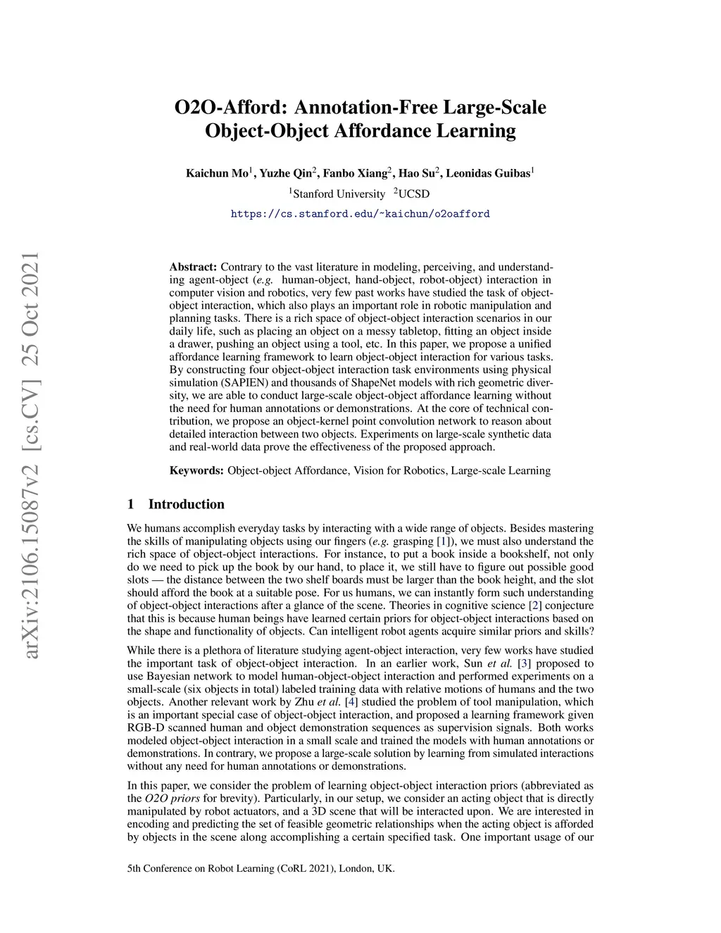 O2O-Afford: Annotation-Free Large-Scale Object-Object Affordance