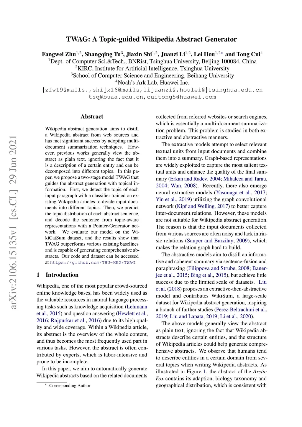 TWAG: A Topic-Guided Wikipedia Abstract Generator