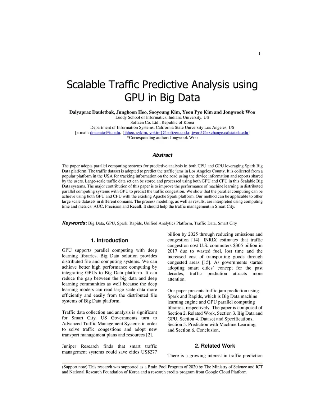 Scalable Traffic Predictive Analysis using GPU in Big Data