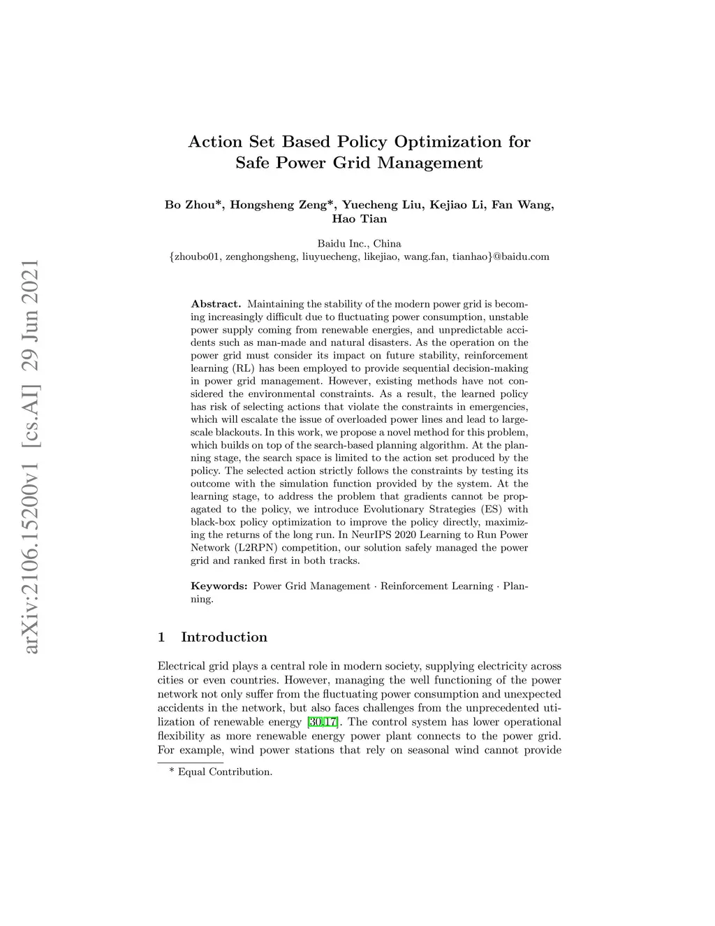Action Set Based Policy Optimization for Safe Power Grid Management