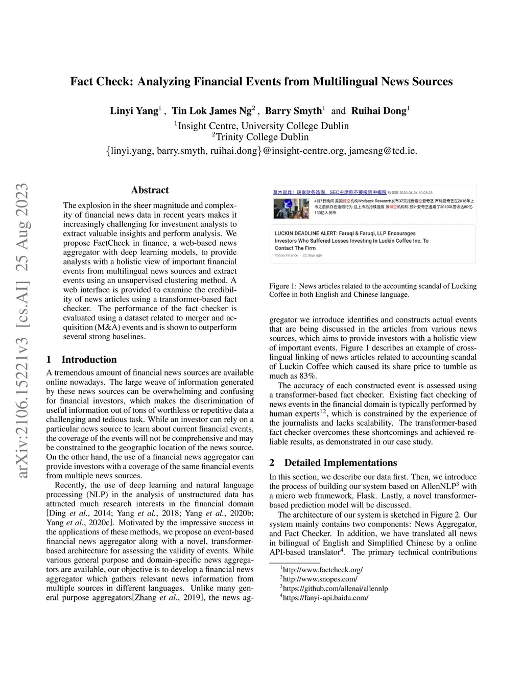 Fact Check: Analyzing Financial Events from Multilingual News Sources
