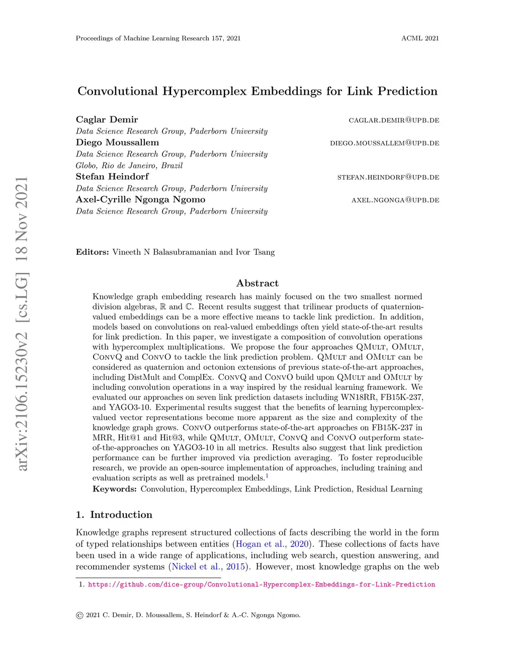 Convolutional Hypercomplex Embeddings for Link Prediction