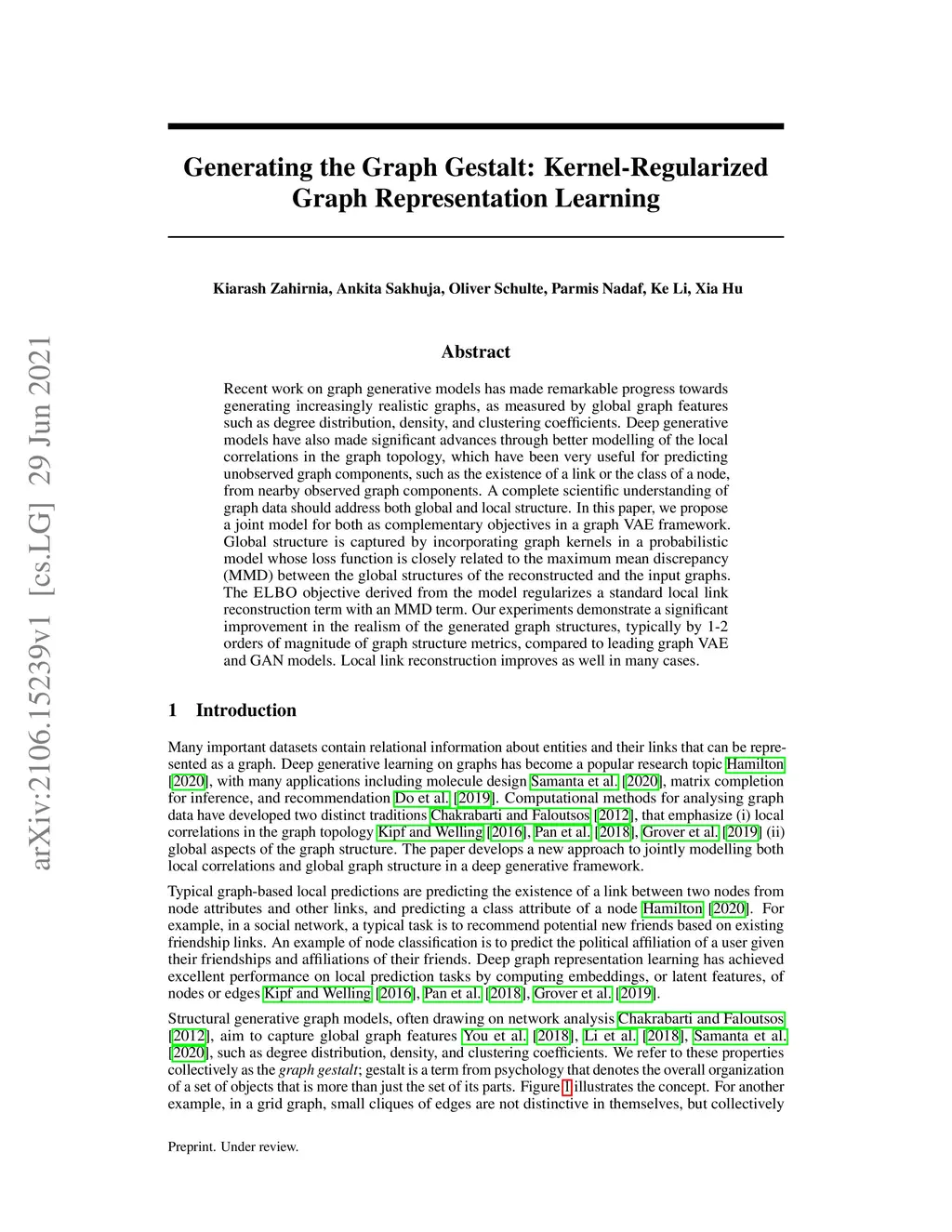 Generating the Graph Gestalt: Kernel-Regularized Graph Representation